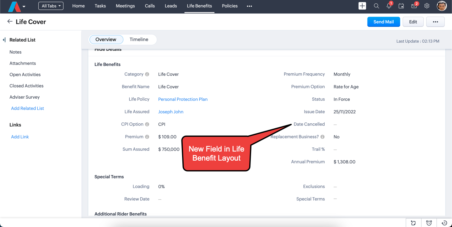 We have added a new field called Date Cancelled and have added this field to the Policies and Life Benefits Layouts. This field will not be updated with insurer imports, so you will need to update these fields whenever appropriate.