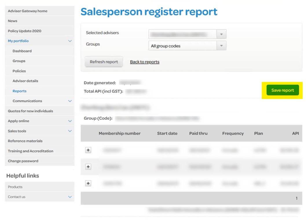 After your have generated the report, make sure you click Save Report and this will download a CSV file to your computer. This is the CSV file you need to upload to Adviser CRM.