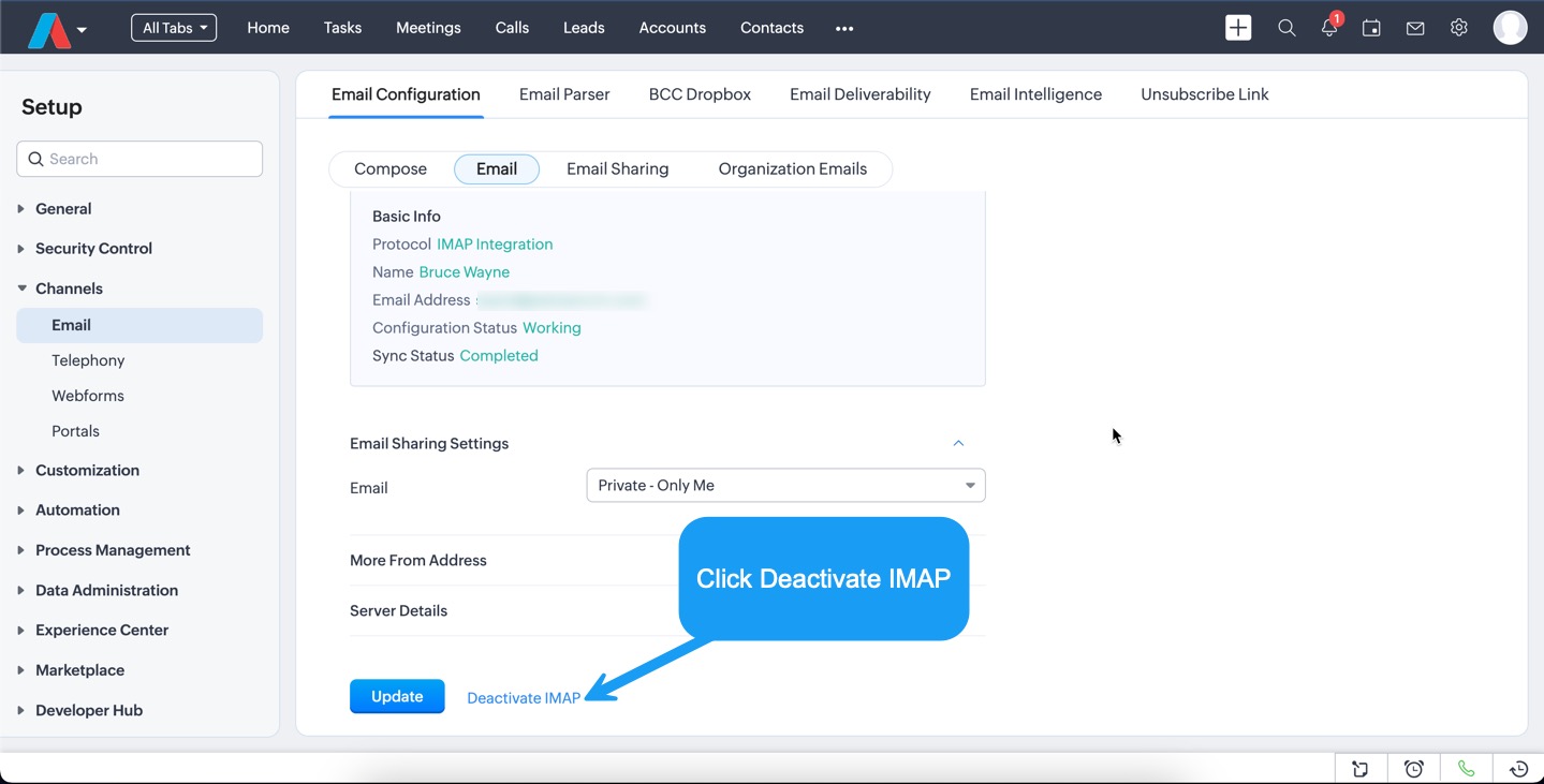 2. Scroll to the bottom of the screen and click Deactivate