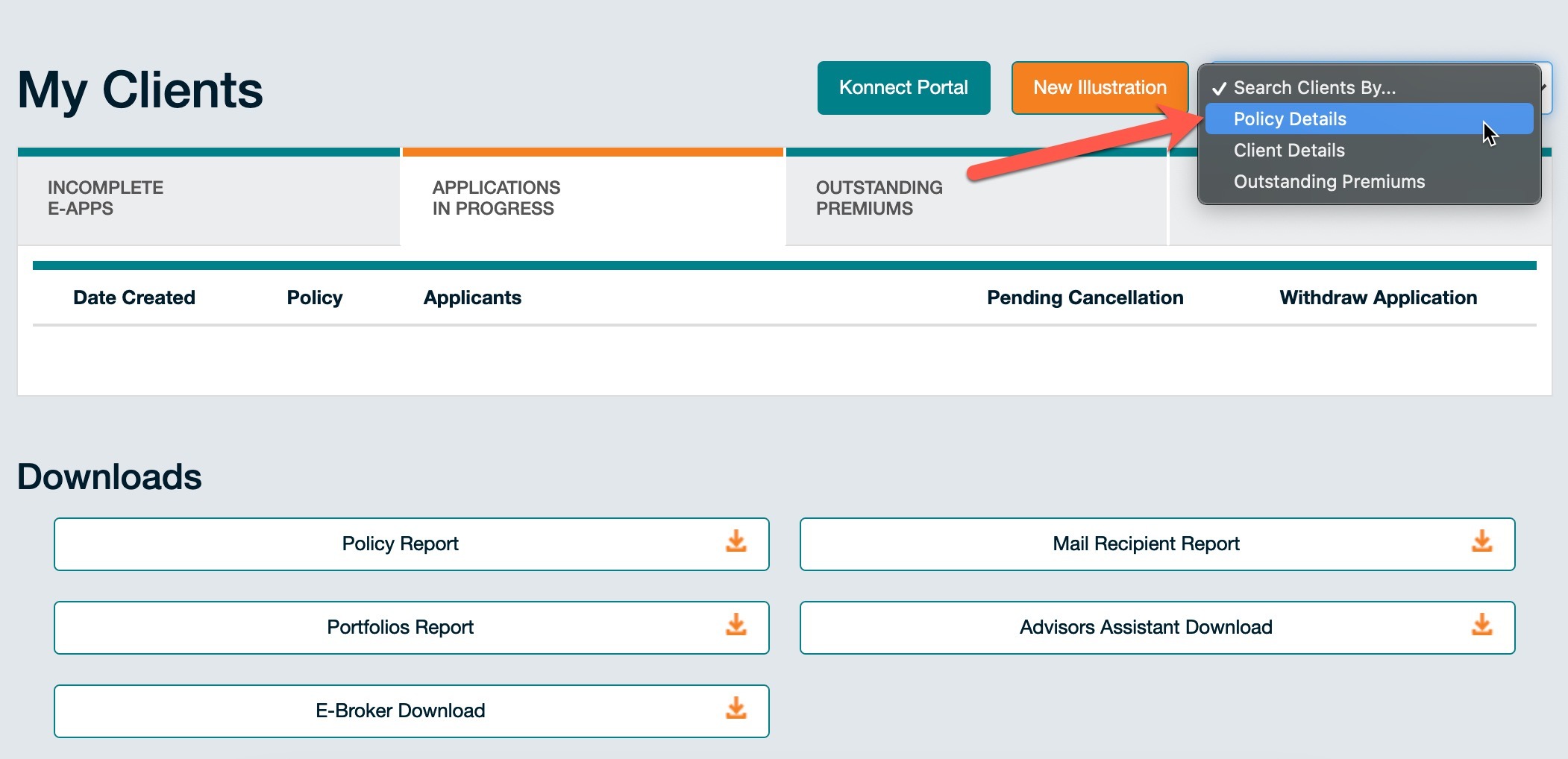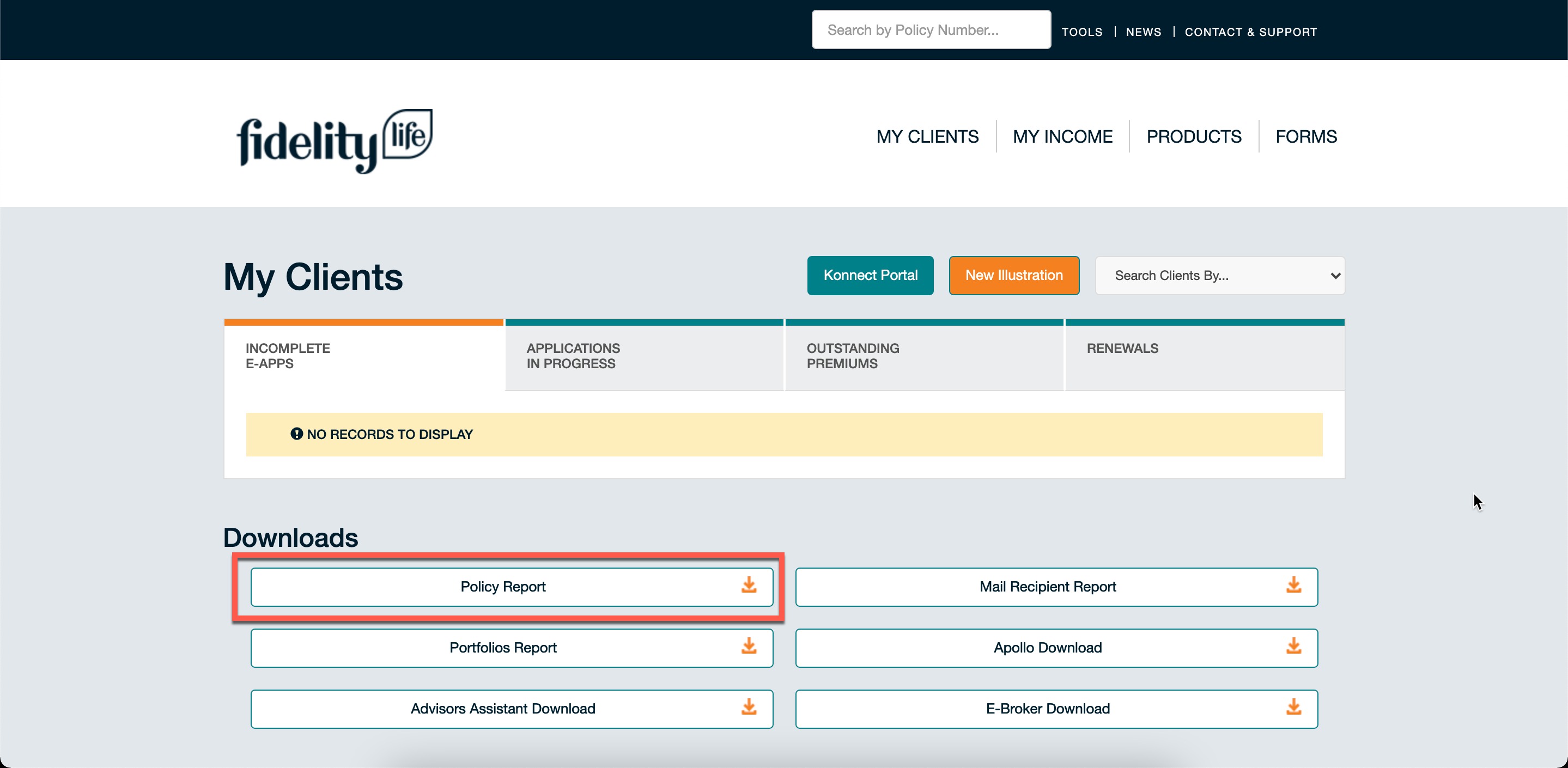 Click the Policy Report option to download your data. This file will be sufficient to import into Adviser CRM. A list of fields that come with the download file are inside the file, but we have listed then at the bottom of the article so you know what type of data will get imported.