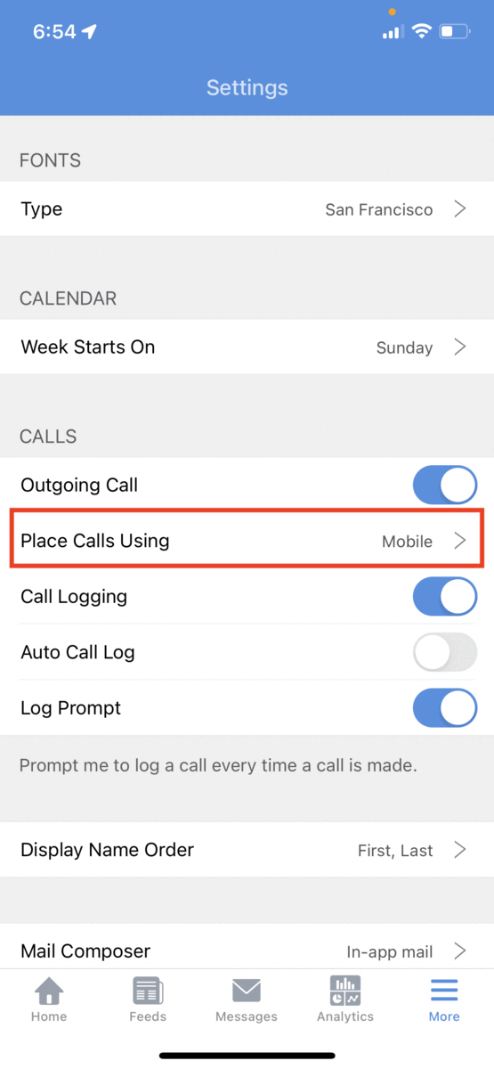 Place Calls Using: Using this option you can choose the mode via which you would like to initiate your calls. The calls can be initiated via Skype, Facetime and your default device's dialler. You can choose the mode as per your requirement and this option is available only in the iOS app.