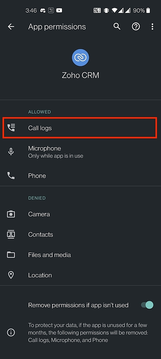 Also, please check if you have granted permission for the calls to get logged within the mobile device's settings. To do so, please follow the steps mentioned below: