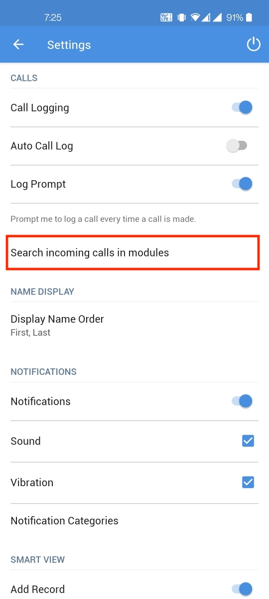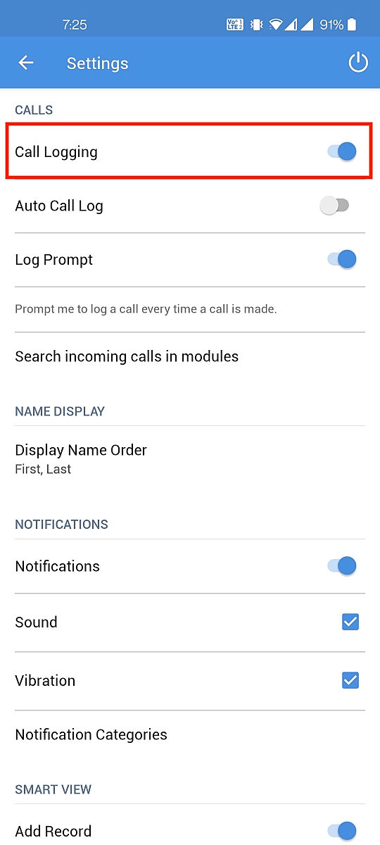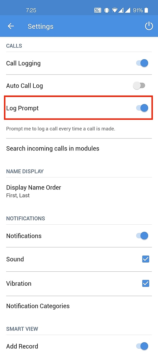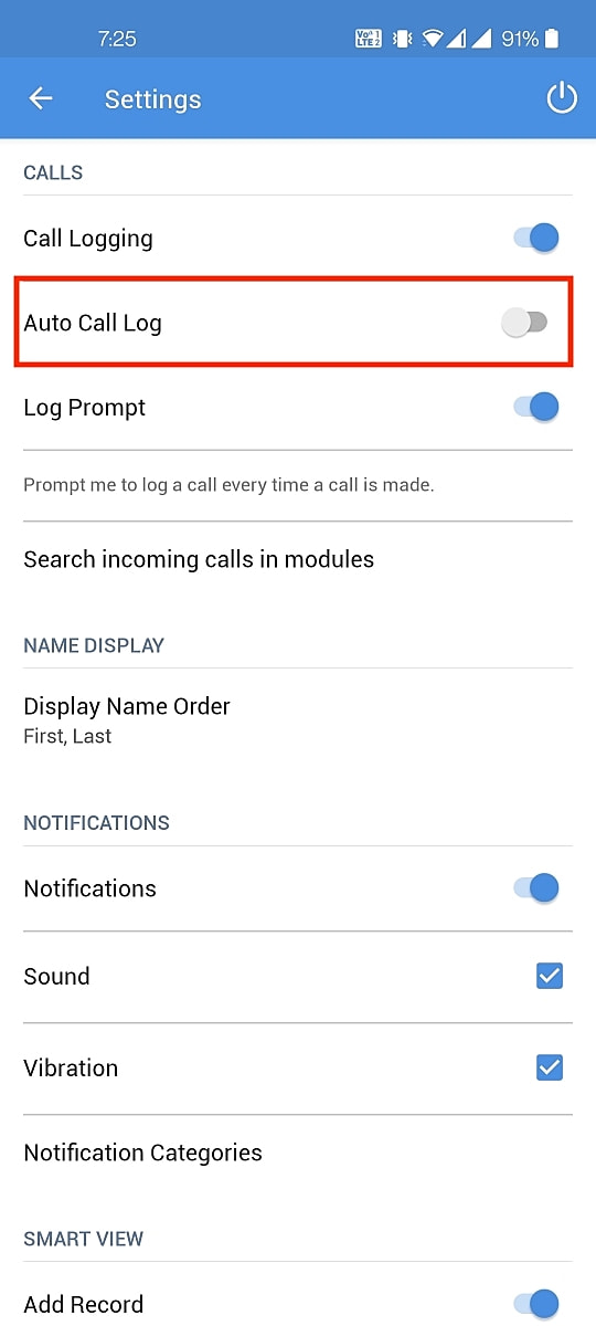 Note: The 'Call logs' option will not be available within the device's settings if the Android version is below Android 10. Also, please ensure the CRM app is running in the background for the calls to get logged successfully.