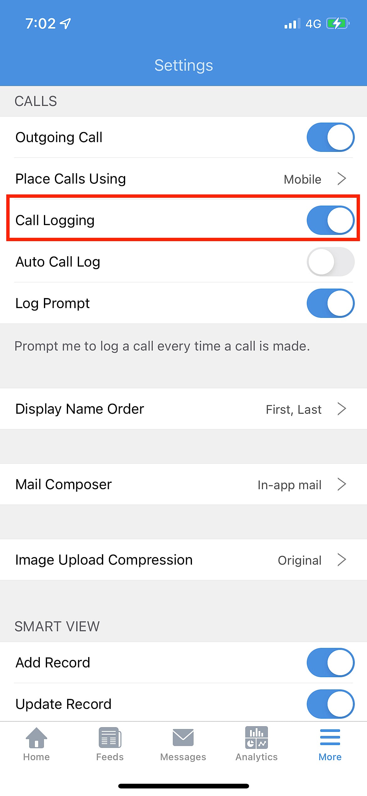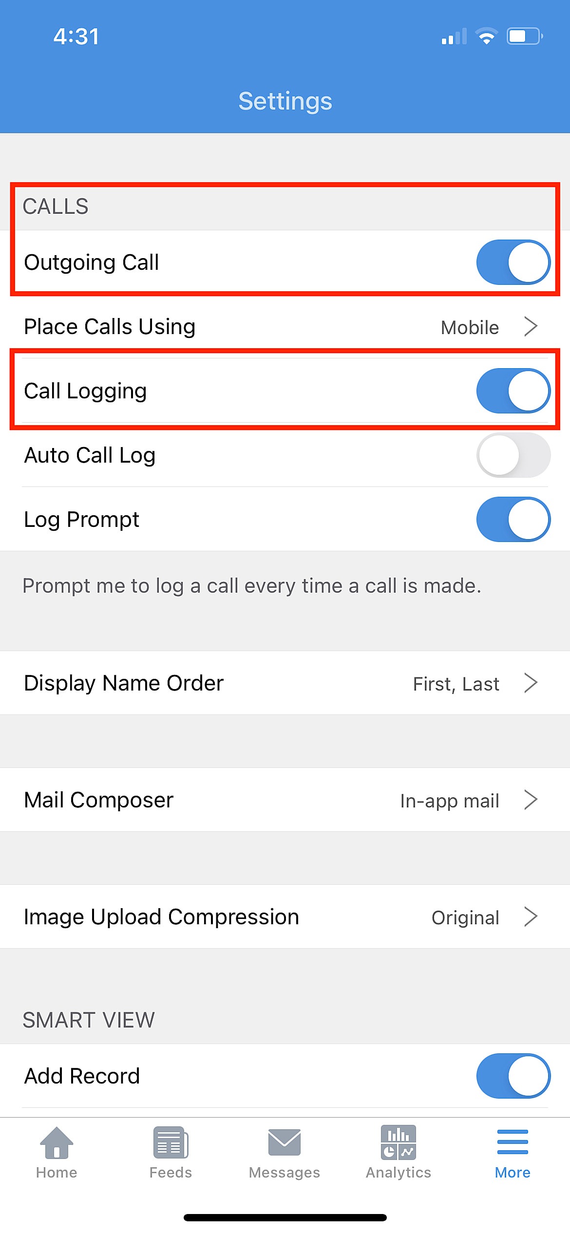 iOSCall Logging: This option should be enabled for the call logging feature to work.