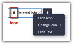 Once the icon is added, right click to Hide or change the icon and Hide the tab name.