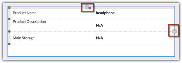 - Hover on rows and columns and click + or - icons to add or delete a row or column.