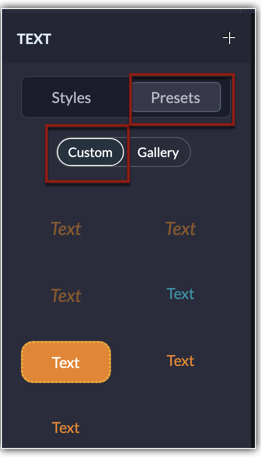 Once you have added the style into presets, you can select the element in the canvas, access the style under the custom tab, and select the desired style to apply.