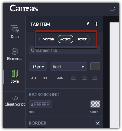 Name the tab by clicking on the tab and entering the tab name in the text bar under Active state.