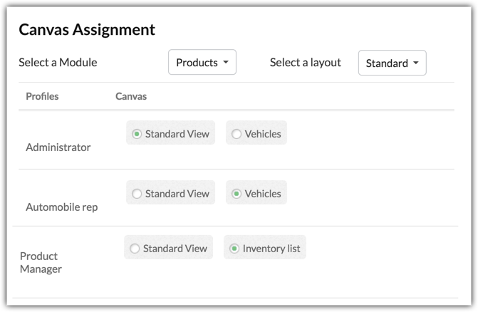 The canvas list view provides ways to customize the record display in the module list. You can add record images, use custom buttons to represent fields, use specific font style or size for the field labels, change the alignment of field types and more. These customizations were limited only to the list view.