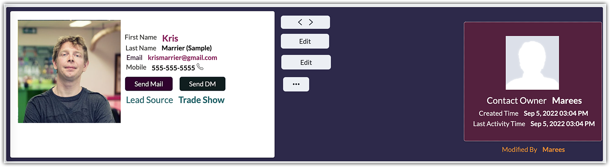 The Canvas Detail page allows you customize the record detail page to your preference by letting you add background color to each field, arrange them in a different order, use custom buttons instead of field names, use different font styles and a lot more. This view is available in all the modules, including the custom modules.