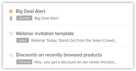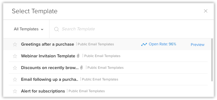 You can view a list of all the available email templates before sending them, in all the ten features. If you want, you can also mark a template as favourite from the list that appears.