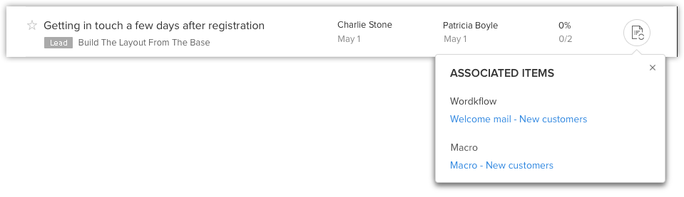 At times some templates will be associated with other CRM functions like Workflow, Lead Follow Up, Macro etc. In these instances, you can view the functions with which the template is associated by clicking on the button that appears at the end of the template details.