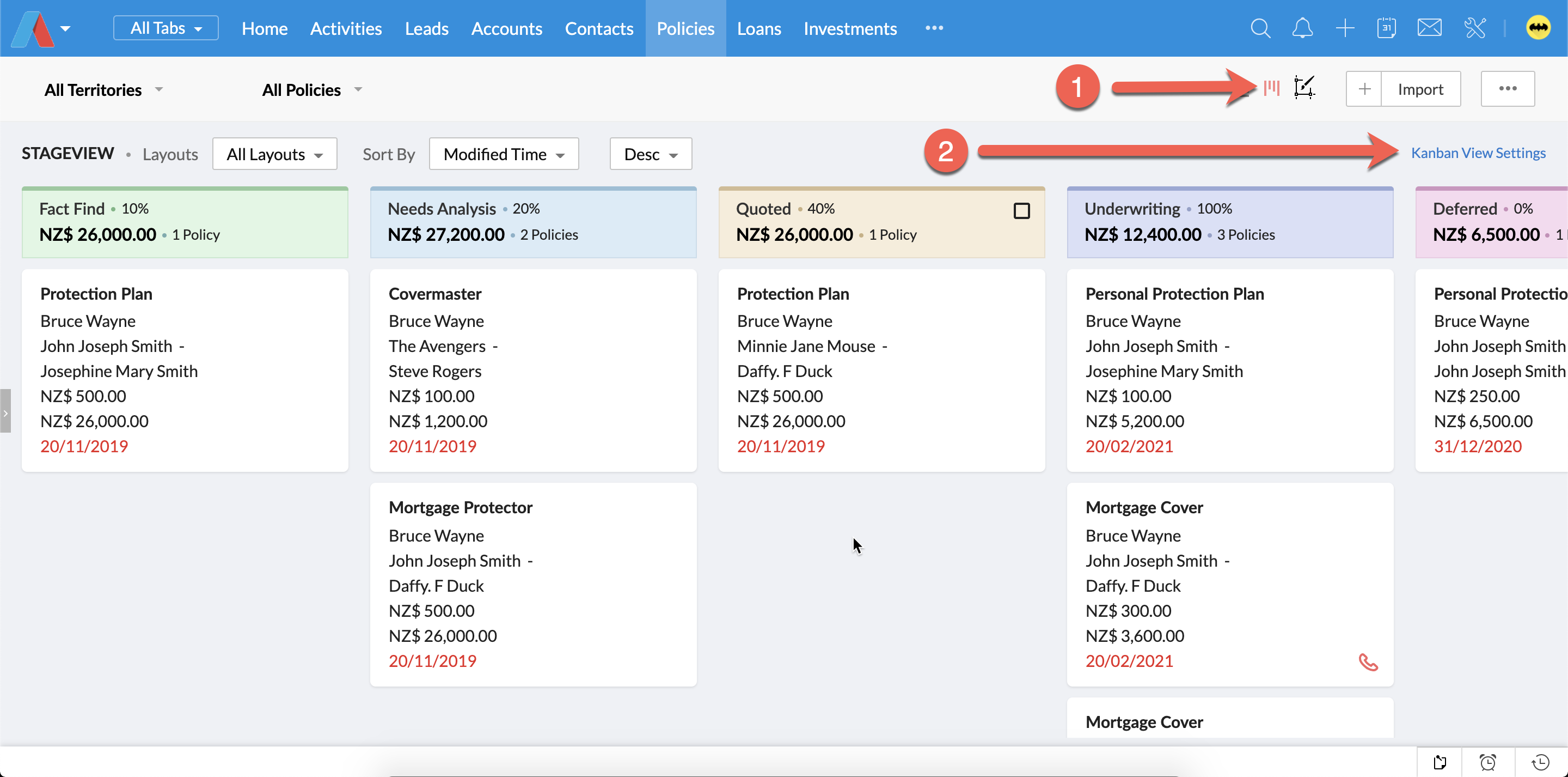 1. Click Policies Module and make sure your View is Kanban View