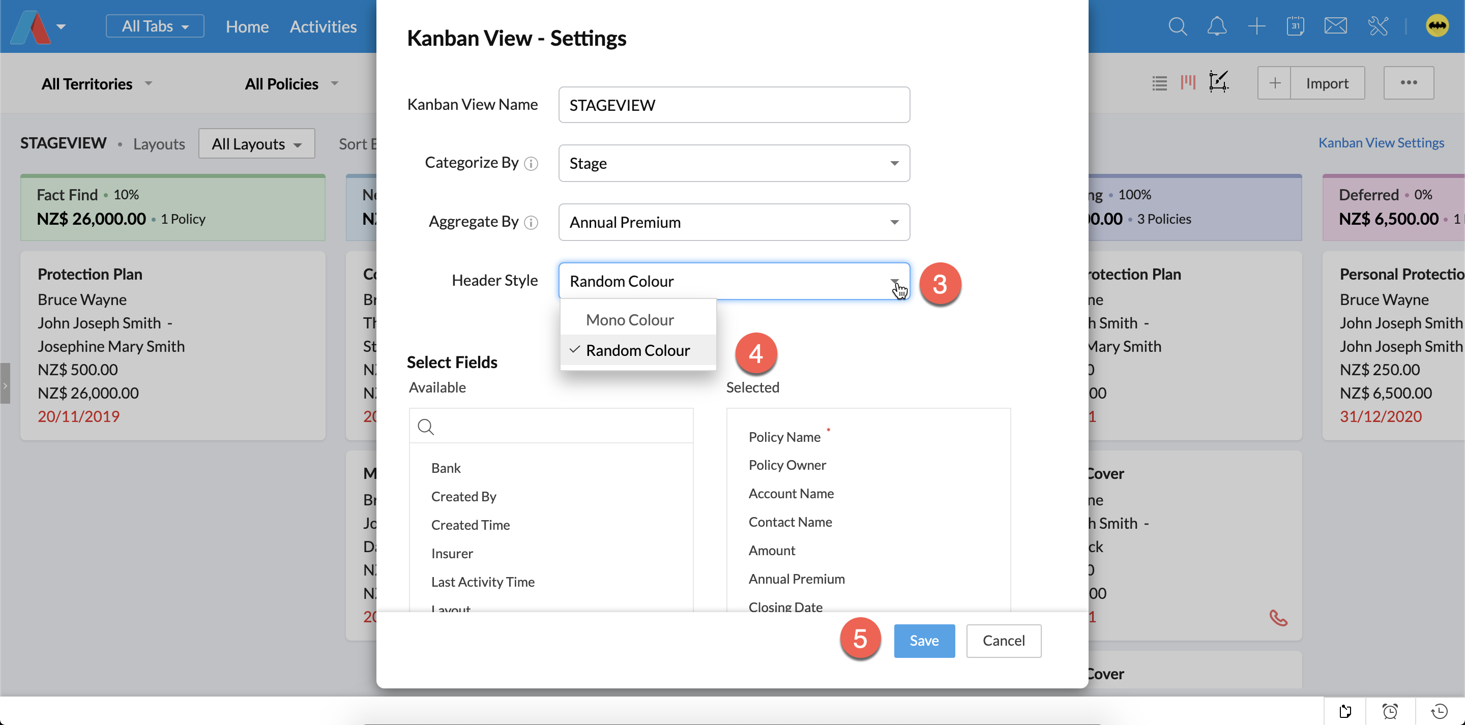 You can make your sales pipeline look beautiful by enabling Random Colour into your Kanban View.